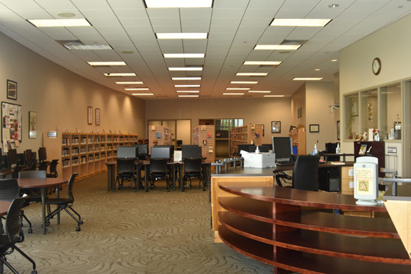 In addition, the librarian is available to assist with research, utilizing citation styles, avoiding plagiarism, as well as providing information literacy instruction. Quiet study rooms, 24 computers, a scanner, a catalog, and a printer/copier are available in the library.